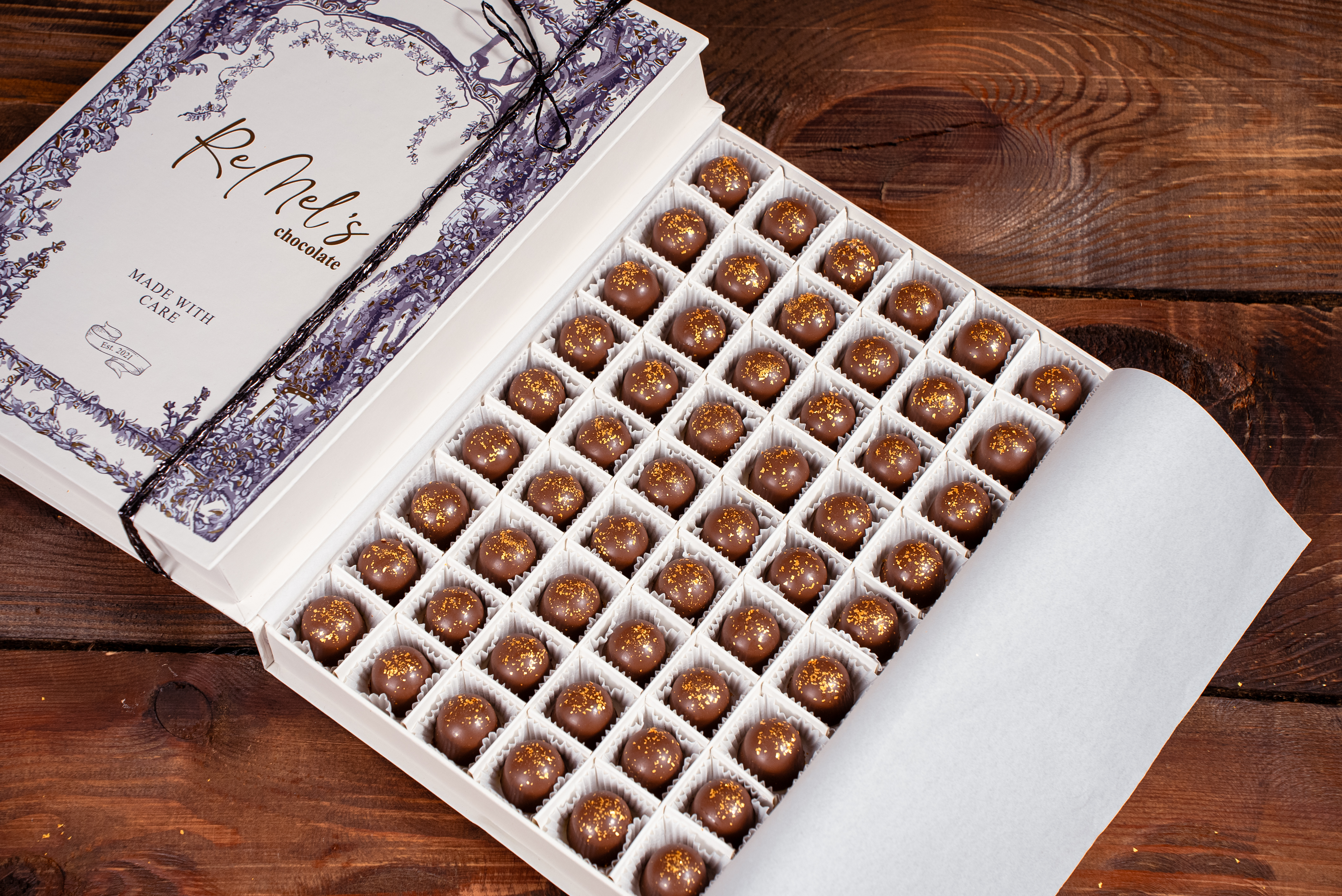 Sizi tamamen bir çikolata dünyasına sokacak bu kutuda, çeşit çeşit çikolatalar bulabilirsiniz. Bitter, süt ve beyaz çikolata parçalarının yanı sıra fındık, karamelli ve meyveli dolgulu çikolatalar da sizleri bekliyor olacak.